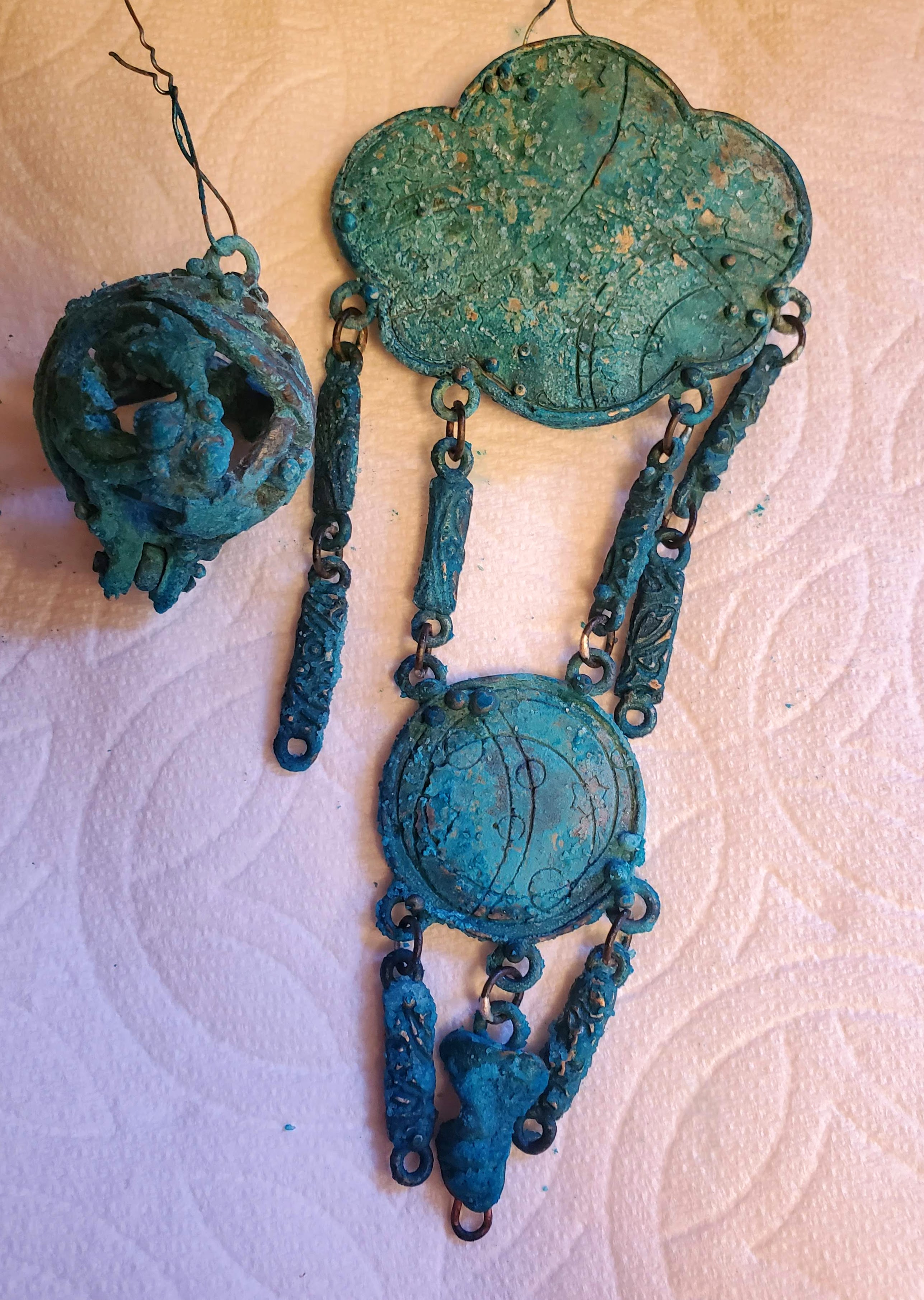 This multicomponent object was cast in bronze using lost wax casting. During the pandemic I carved each individual piece out of wax in my home studio.