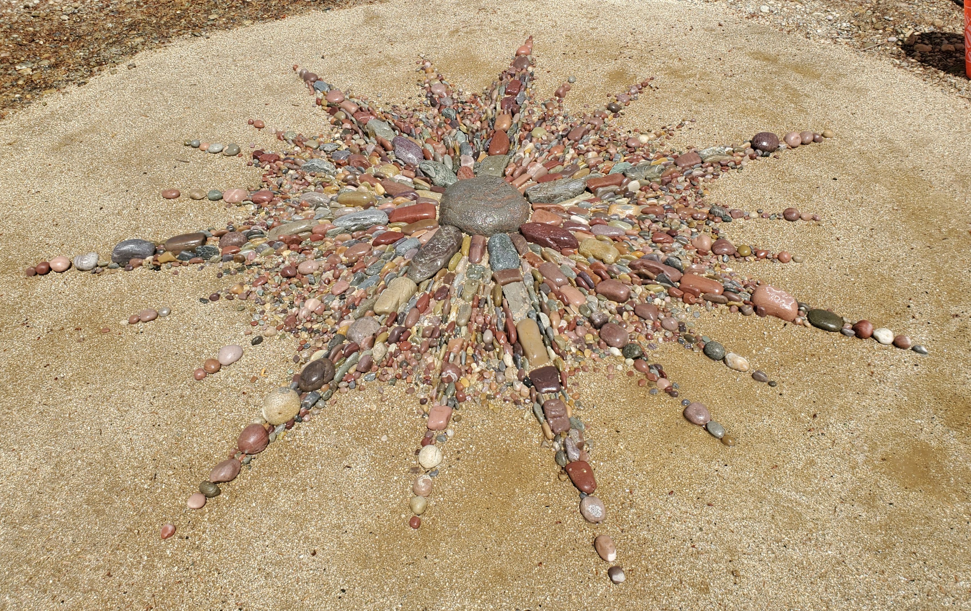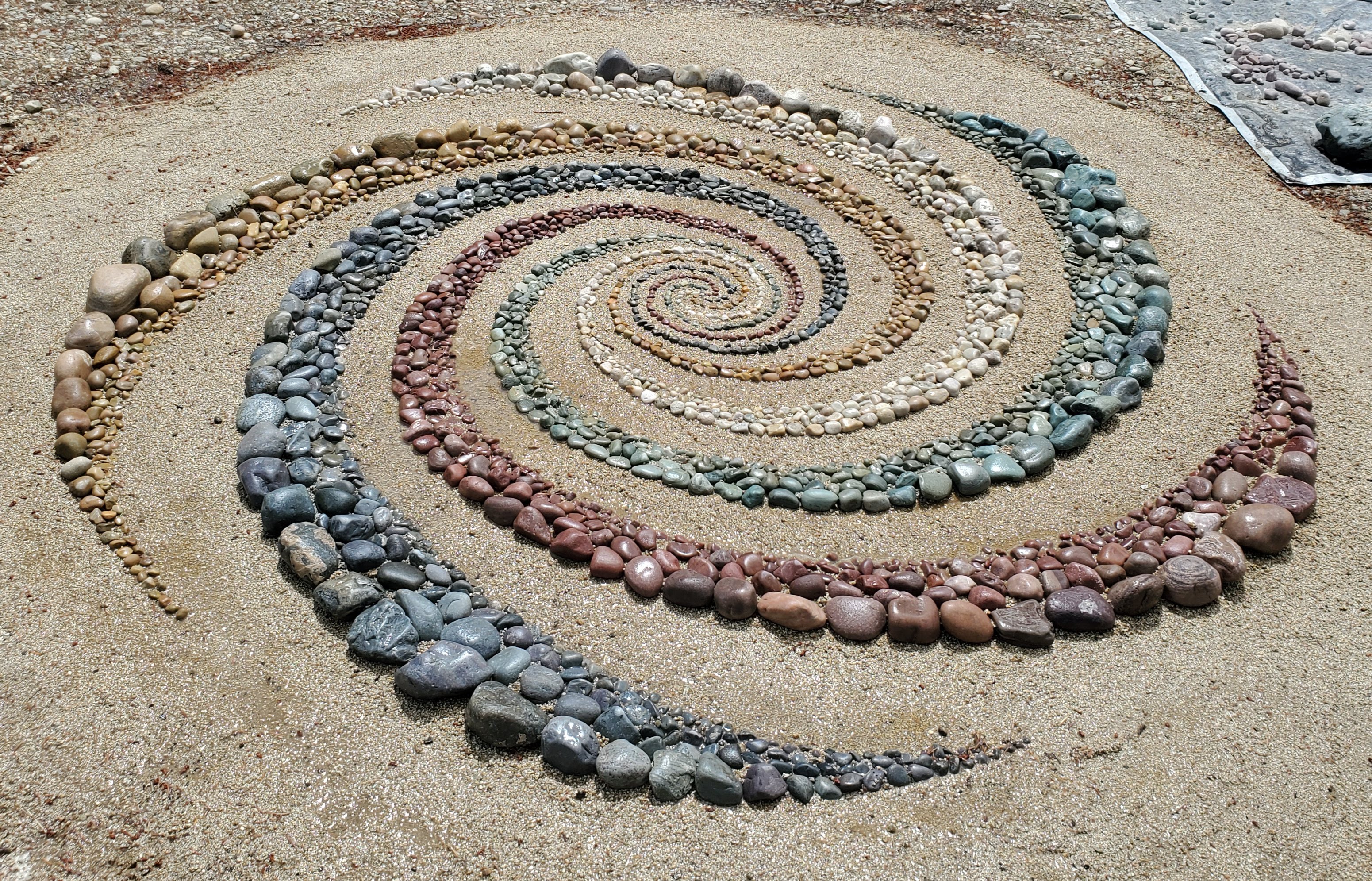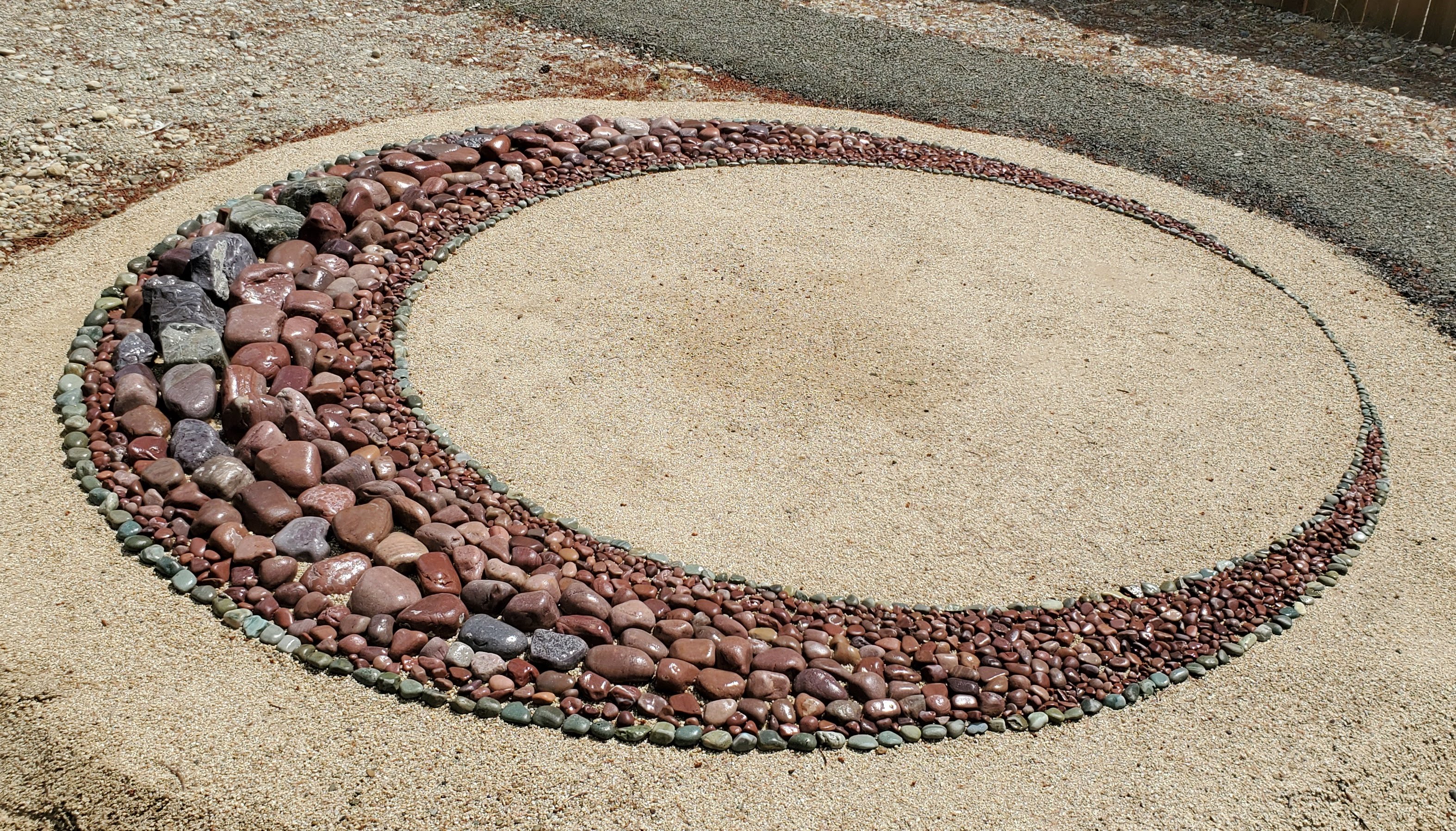 This was a commissioned project to create three 12 foot granite circles with rainbow river rock art pieces. The idea is that a landscape with be planted around them so that you encounter them as you walk through the plants.