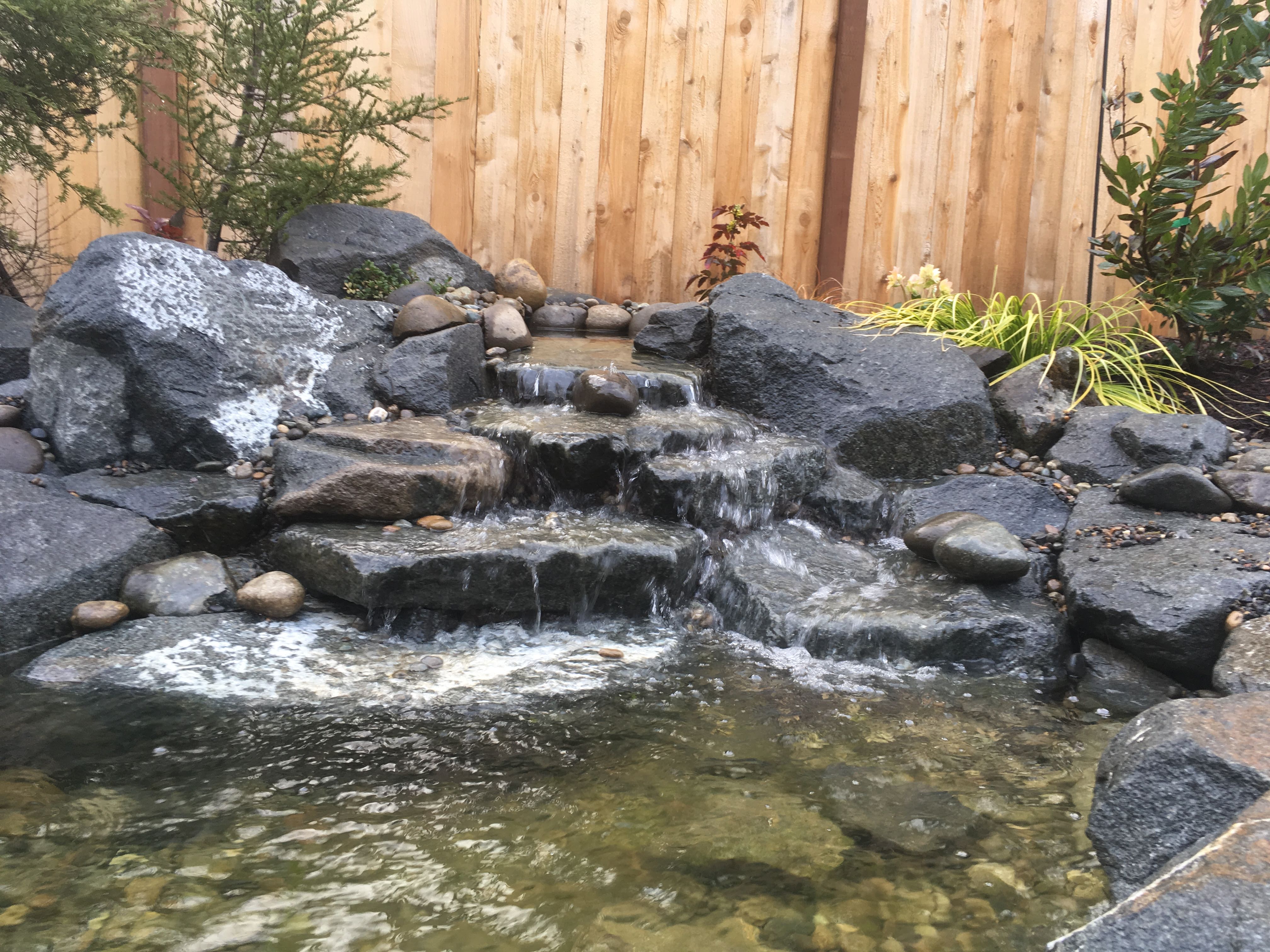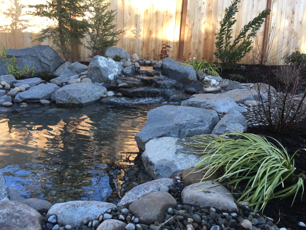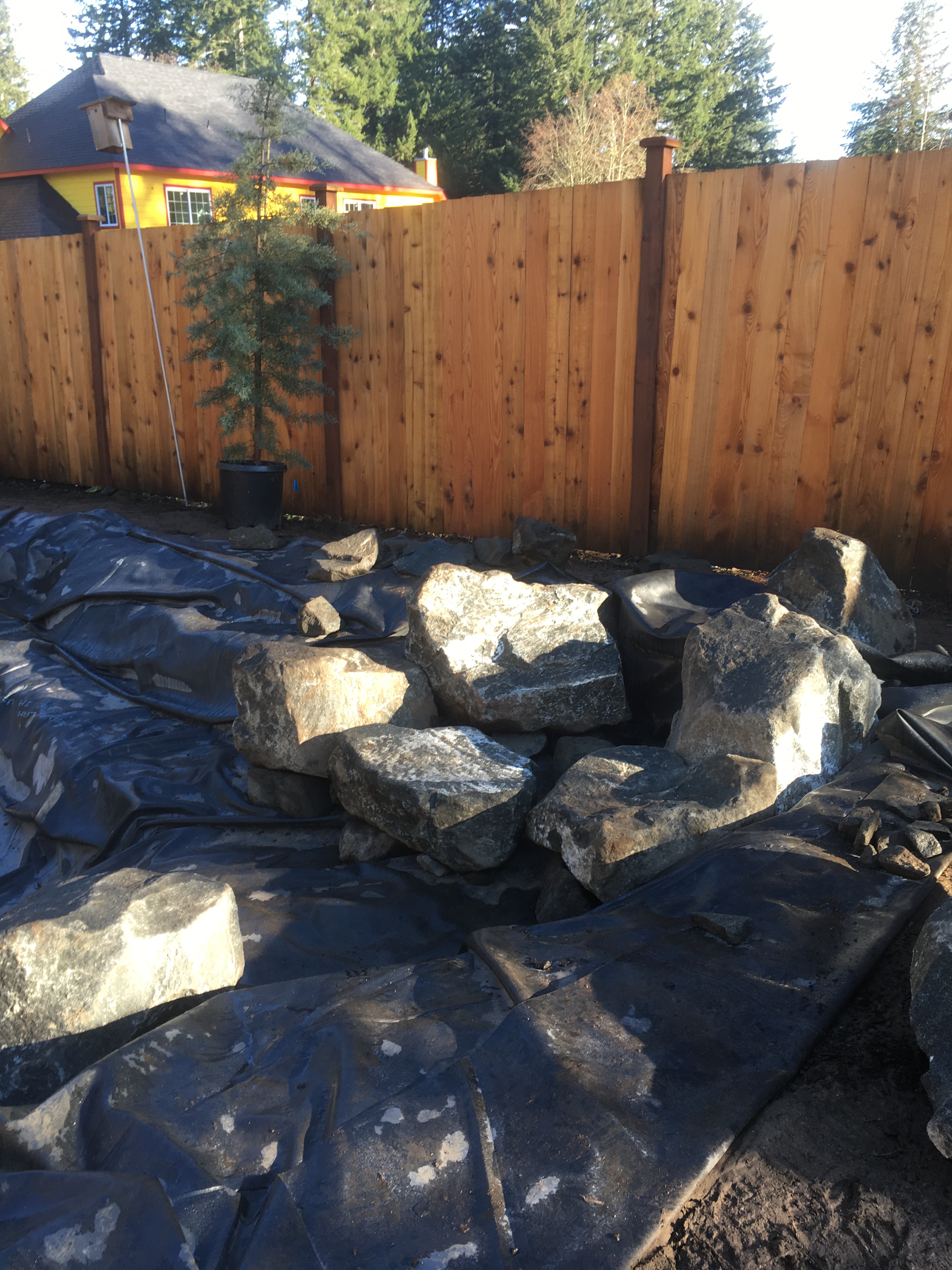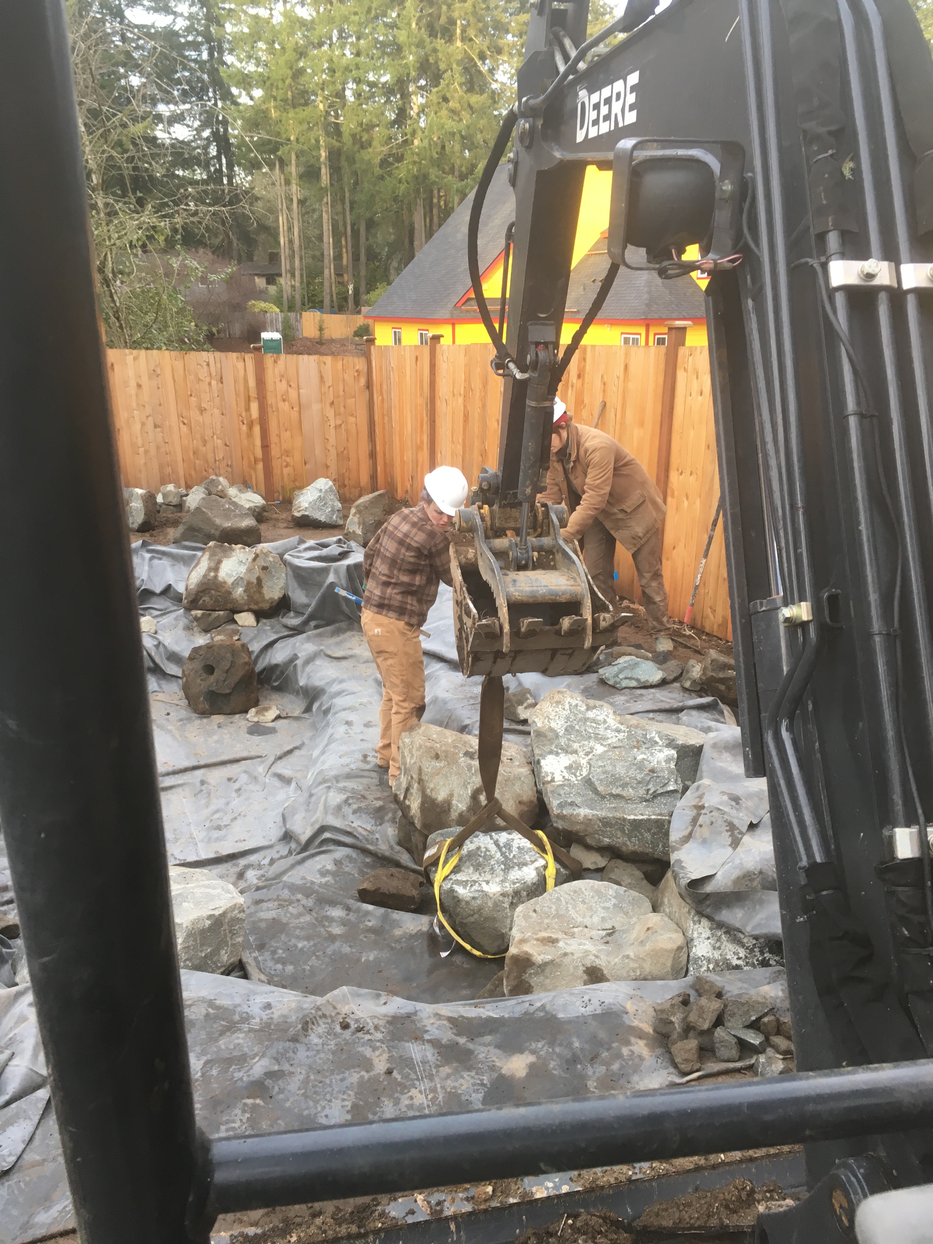 This Project required hand picking and placing large granite boulders and layers of rock to create a low tone and an obvious sheet of water.